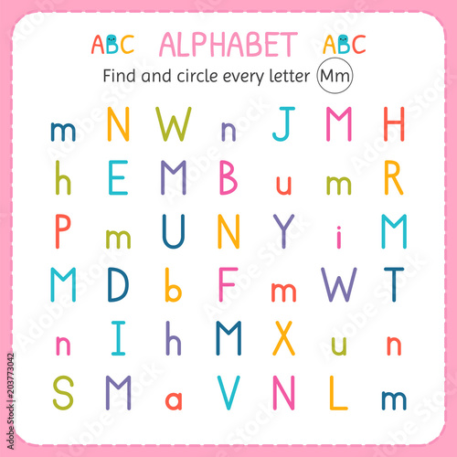 Find And Circle Every Letter M Worksheet For Kindergarten And Preschool Exercises For Children Vector Illustration Canstock
